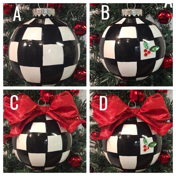 Rae Dunn Inspired Ornaments Black White Checkered Ornaments Etsy