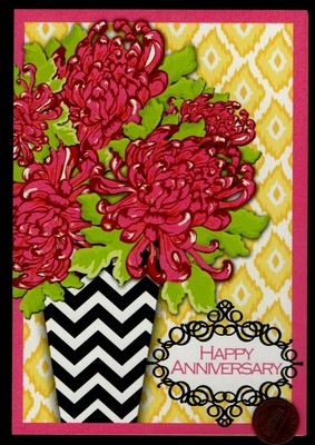 Anniversary Pink Flowers Chevron Vase Black White Anniversary