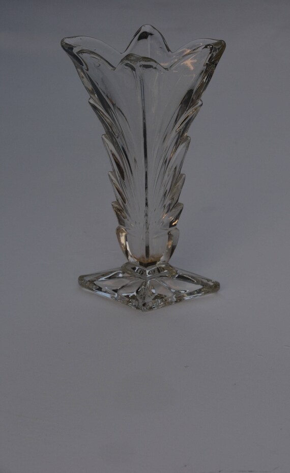 Art Deco Clear Pressed Glass Chevron Vase Etsy
