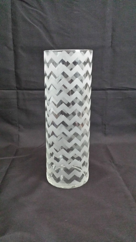 Chevron Glass Vase Etched Striped Vase Zig Zag Pattern Art Etsy