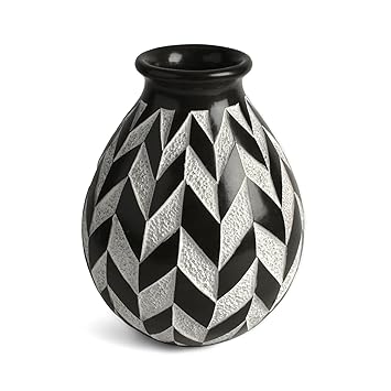 Hosley Elegant Expressions Chevron Black And White Ceramic Vase