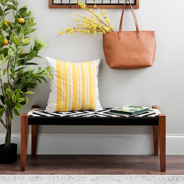 Embroidered Medina Upholstered Bench Black White Benches And Chairs Soft Furnishings Homeware