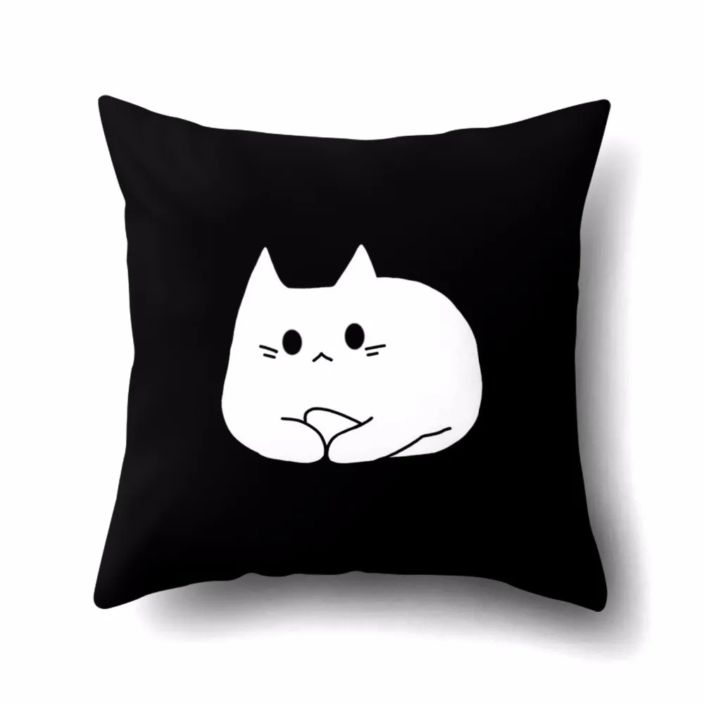 Cute Cartoon Pattern Pillowcase Cat Pillow Case Black White Kitten