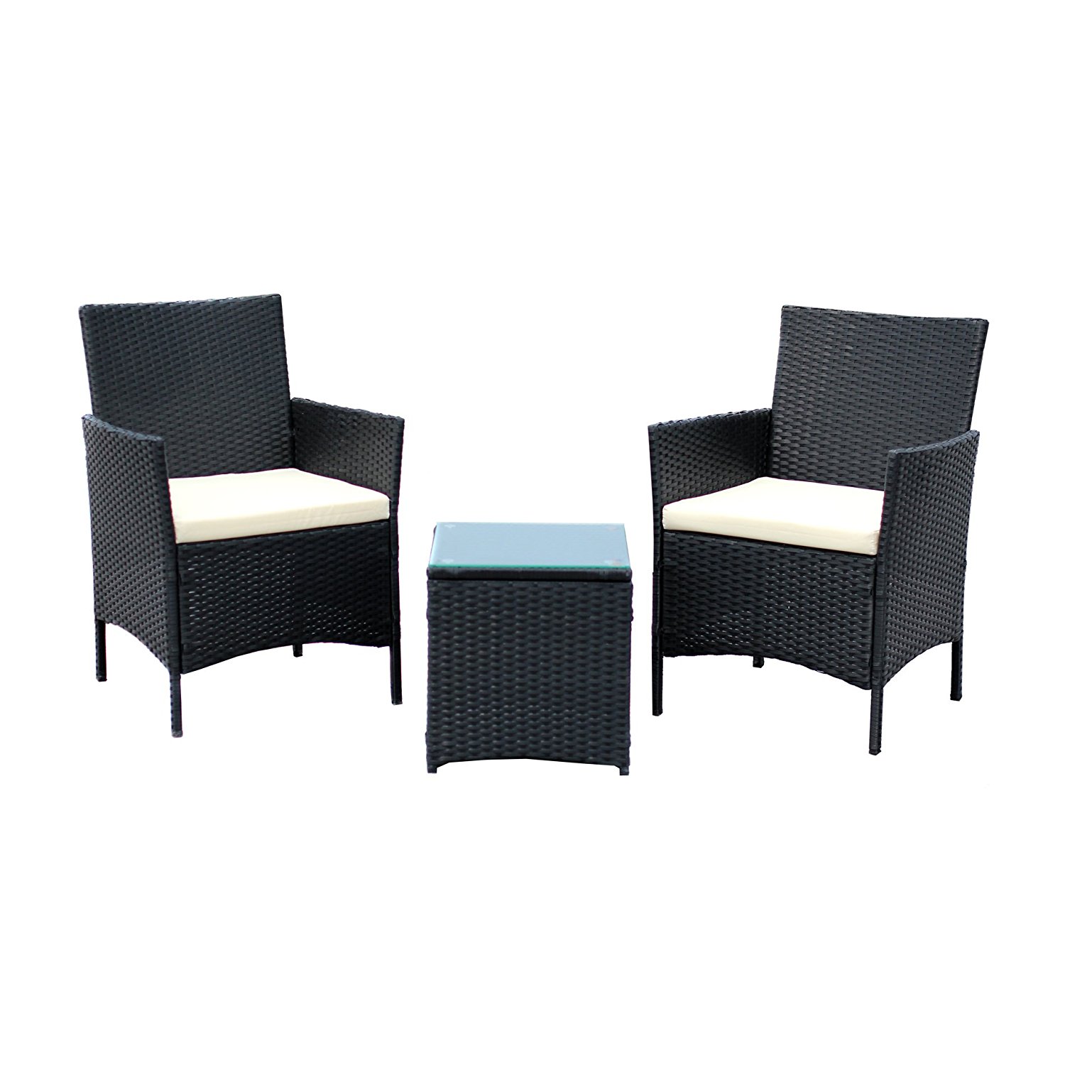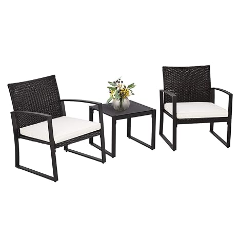 3 Piece Rattan Wicker Compact Outdoor Patio Furniture Set With
