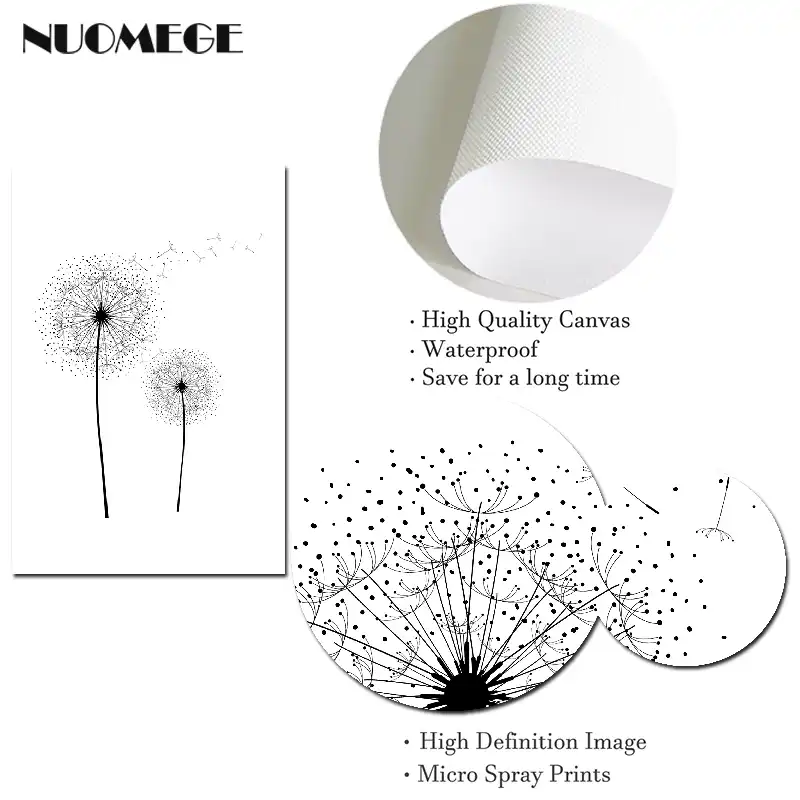Colorfulboy Canvas Art Print Dandelion Quotes Black White Nordic