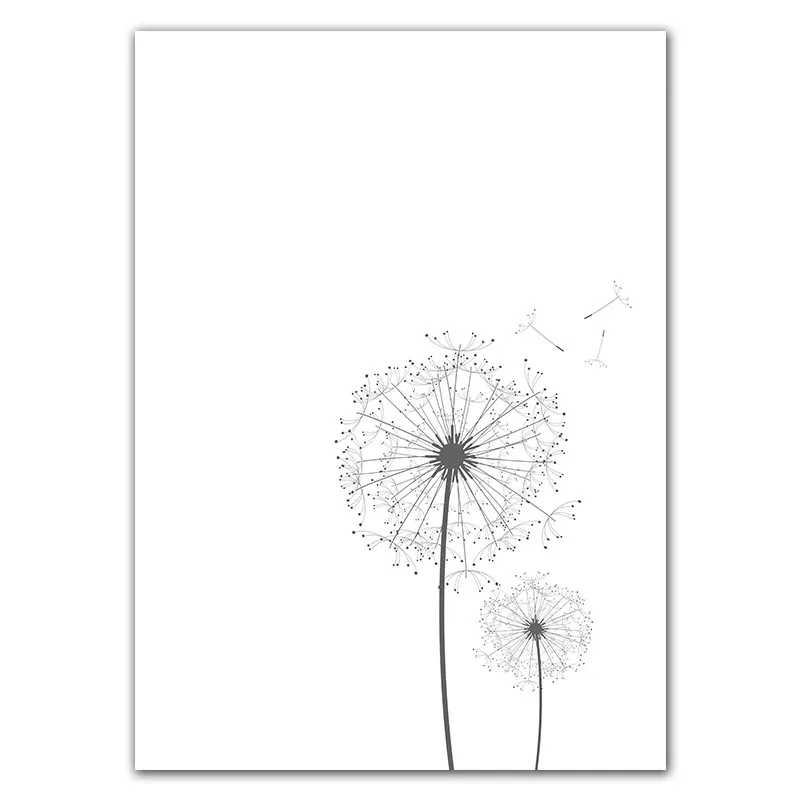 Dandelion Flower Landscape Wall Art Canvas Poster Black White