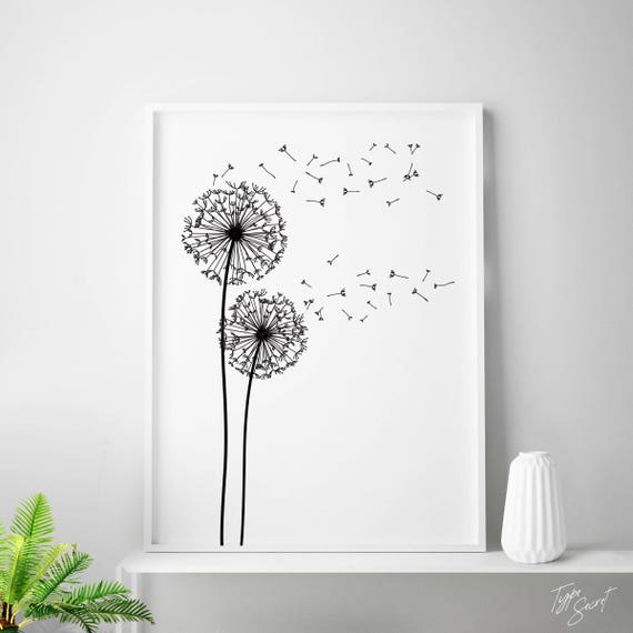 Dandelion Print Dandelion Wall Art Black And White Dandelion Etsy