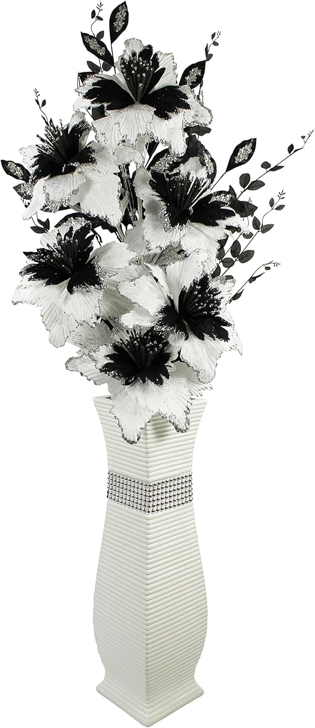 92 Mesh Diamond Modern Fashion White Black Flower Large Floor Vase