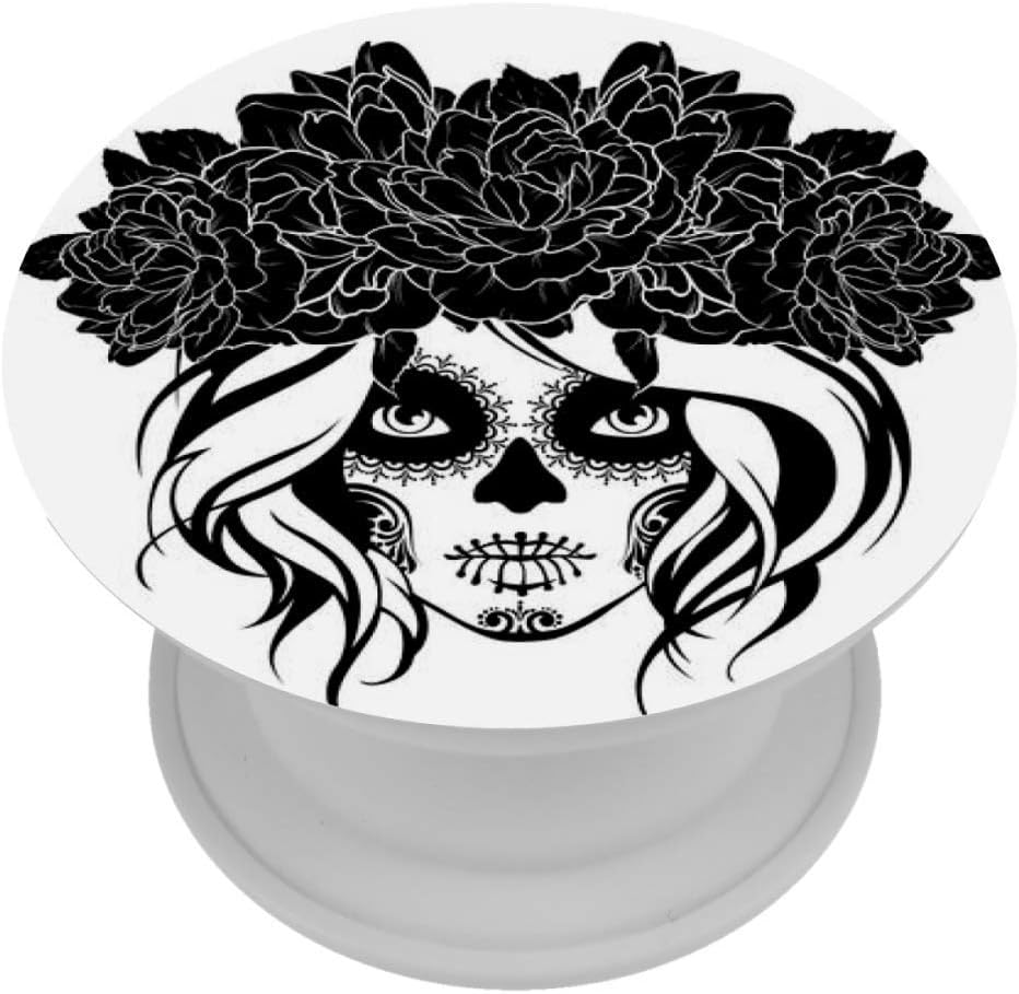 Nobrand Skull Girl With Flower Wreath Black And White Illustration