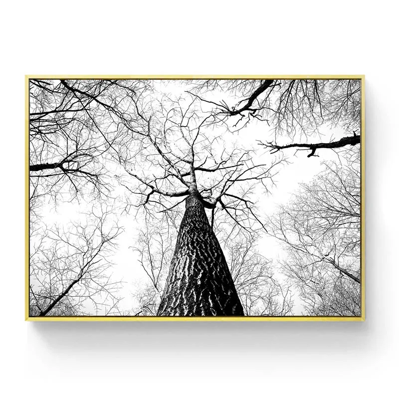 Live Art Decor Black And White Forest Canvas Wall Art Low Angle