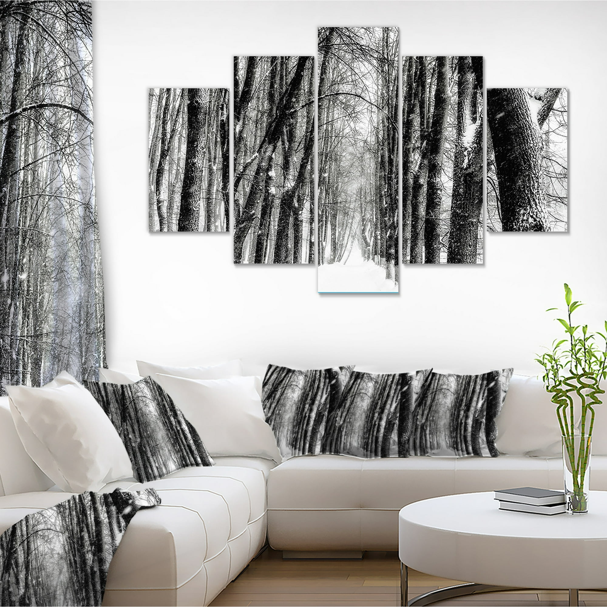 Millwood Pines Sunbeams Through Black White Forest 5 Piece Wall