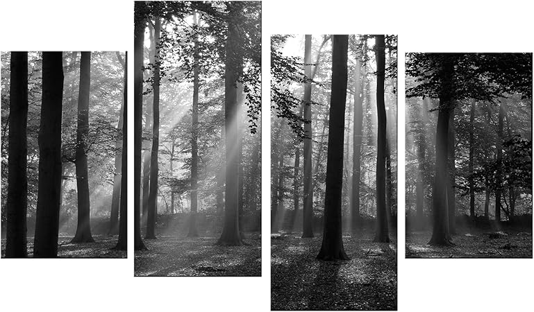 Black White Forest Canvas Picture Print Wall Art Split Panel