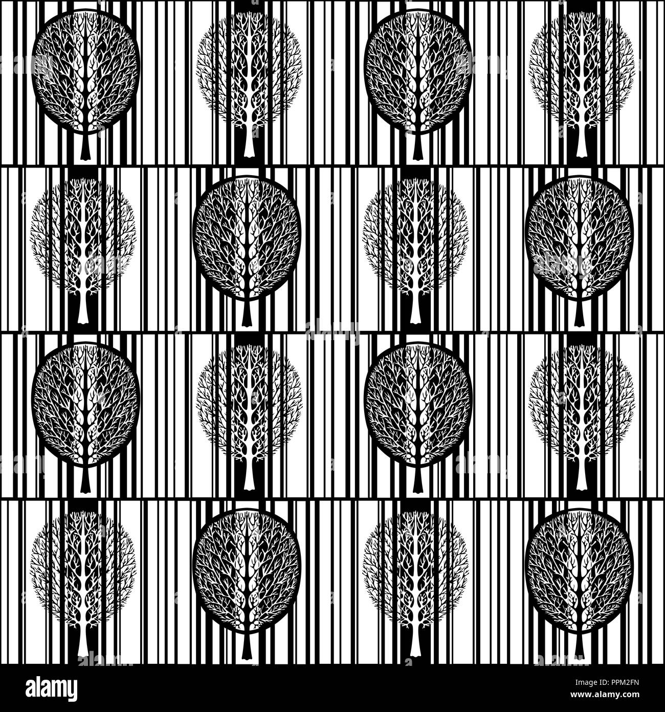 Abstract Tree Seamless Pattern Stylized Black And White Forest
