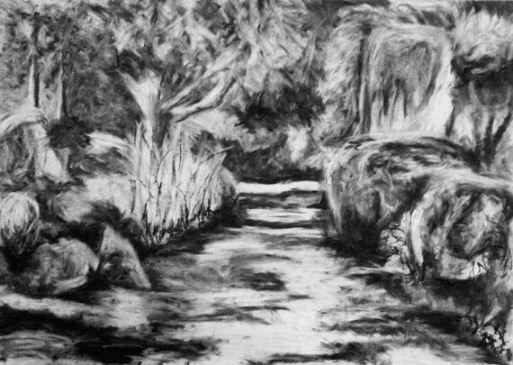 Charcoal Drawing Nature Drawing Pathway Drawing Forest Etsy