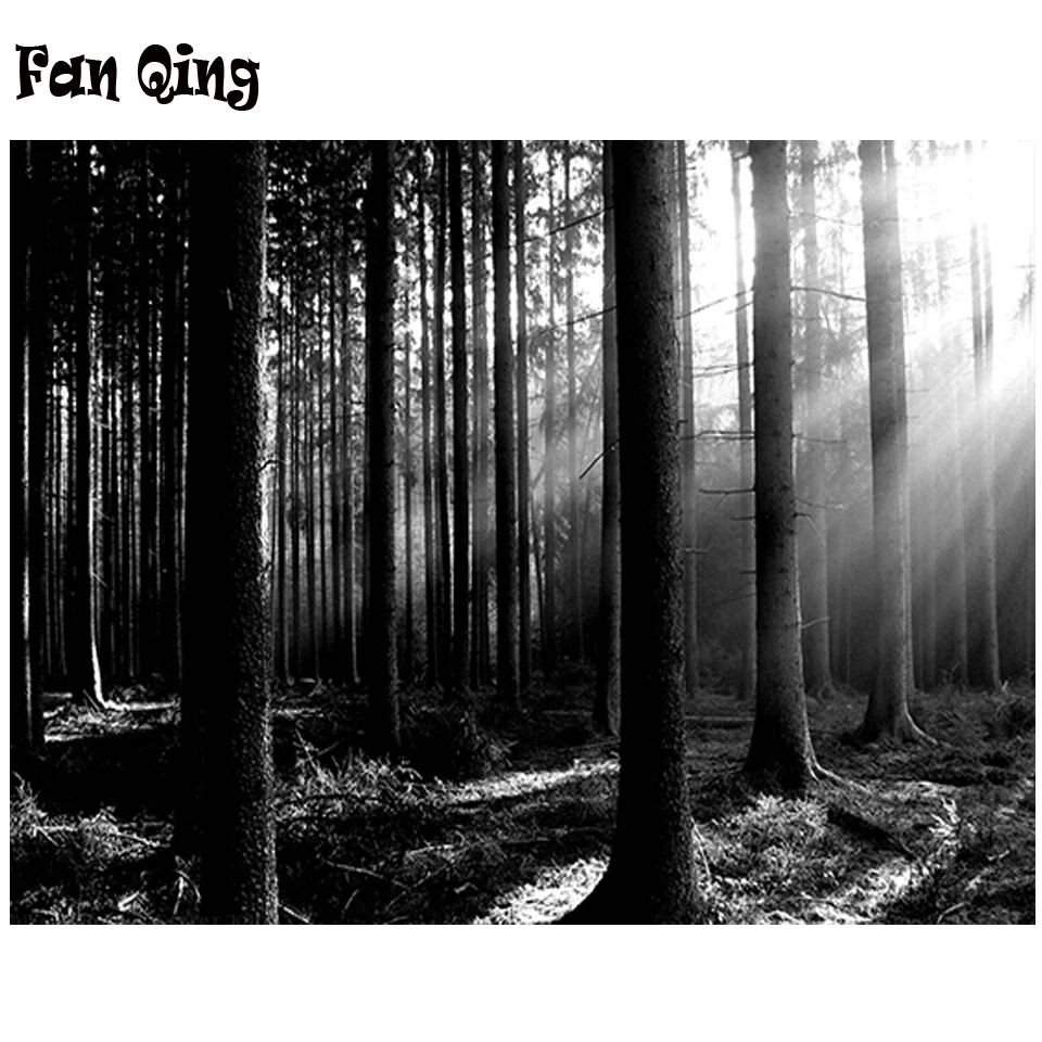 5d Diy Diamond Painting Black And White Forest Sunlight Diamond