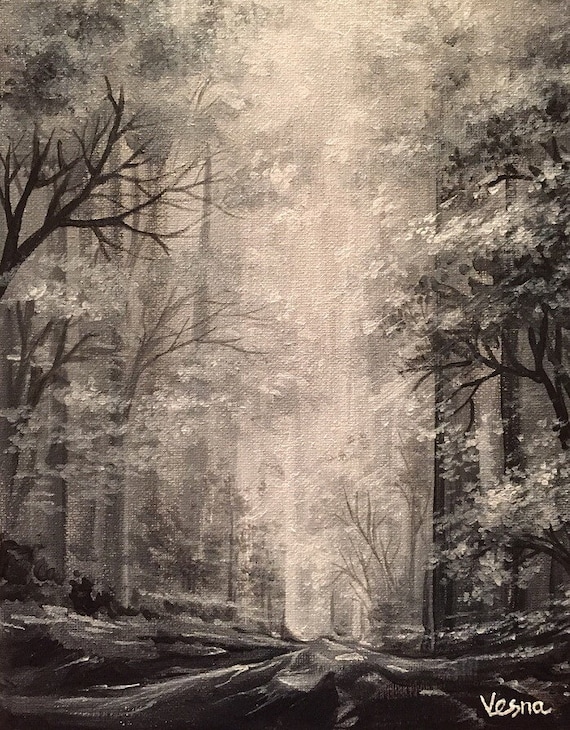 Forest Painting Black White Forest Watercolor Misty Forest Etsy