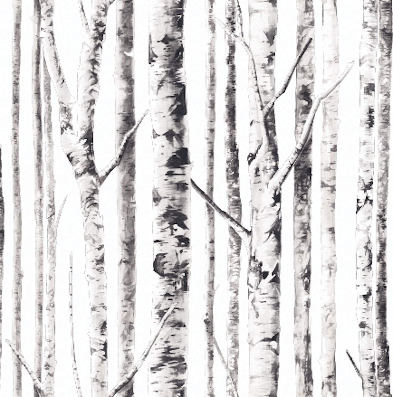 Birch Tree Wallpaper Modern Black White Woods Forest Wallpaper