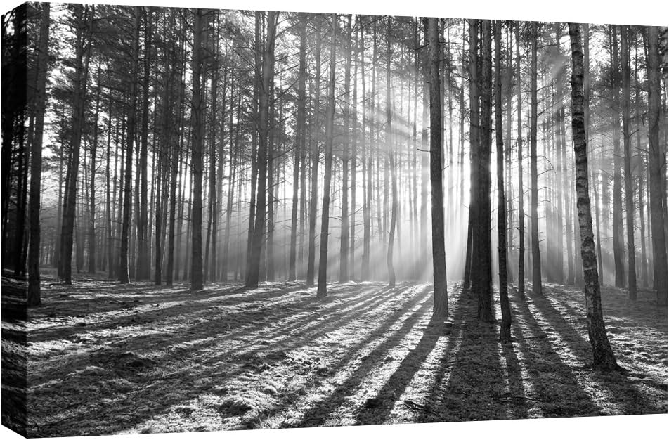 Large Canvas Art Print Sun Beams Through The Forest Black And