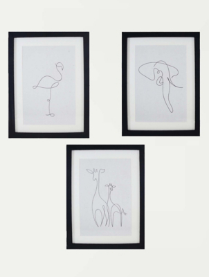Black Hand Drawn Animals Wall Art With Frames 3 Pack Home George