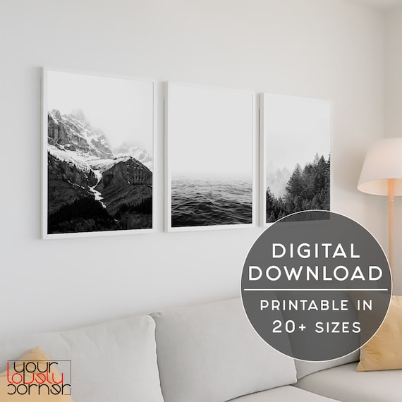 Nature Printable Wall Art Set Of 3 Prints Black And White Art Etsy