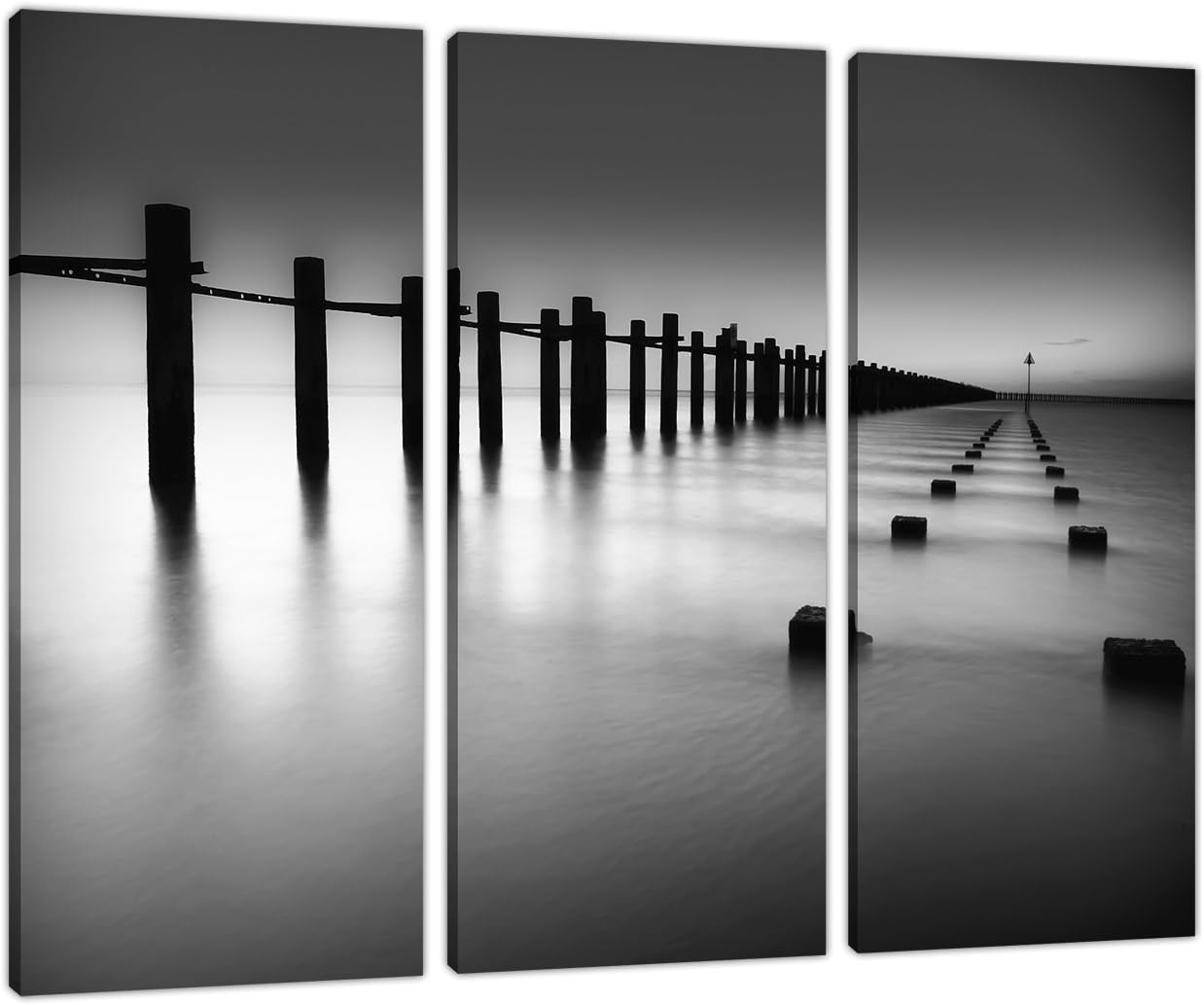 Set Of Three 3 Part Black White Canvas Wall Art Pictures Prints