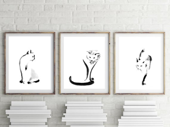Canotstoppainting On Twitter Minimalist Cat Art Print Set 3