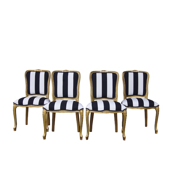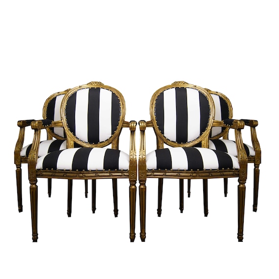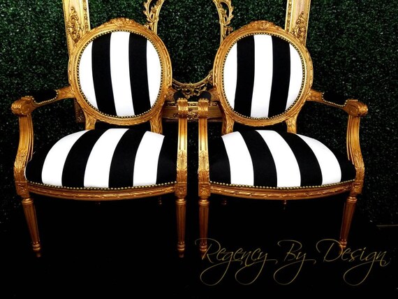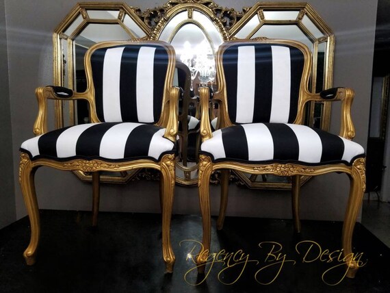 Black And White Chair Striped Louis Xv French Chairs Gold Etsy