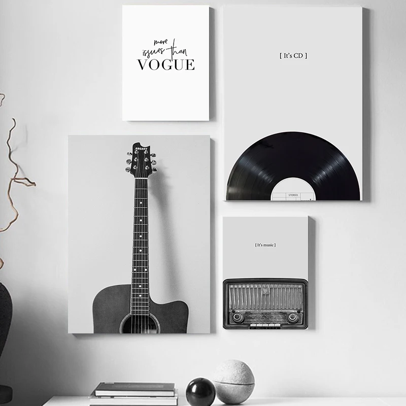 Nostalgic Black And White Guitar Radio Cd Music Equipment Wall Art Canvas Print Painting Decorative Picture Room Decoration Painting Calligraphy Aliexpress