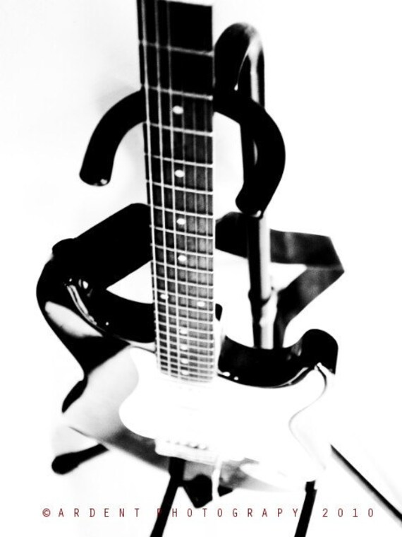 Black And White Electric Guitar Downward Perspective Musical Etsy