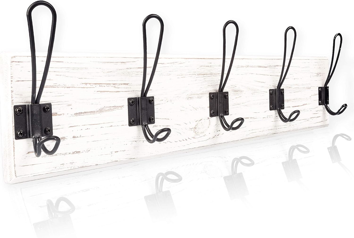 Dokehom 5 Black Hooks On Wooden Board Wall Mounted Coat Hook Rack
