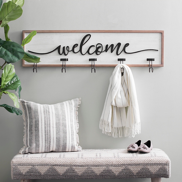 White And Black Welcome Wall Hooks Kirklands