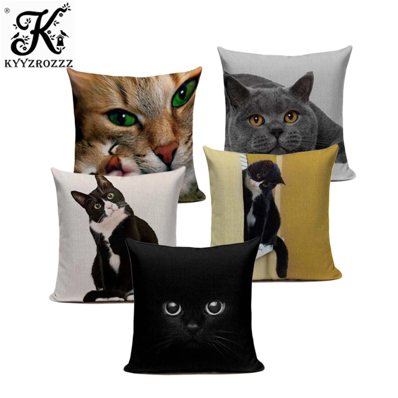 New Linen Pillow Cover Black White Hand Painting Yellow Cute Cat Kitchen Chair Cushion Cover Home Decorative Pillow Case The Largest Online Food Marketplace For Any Grocery Market In Usa
