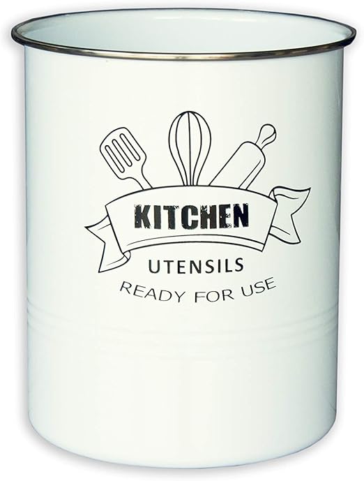 Amazon Com Kitchen Utensil Holder White With Stainless Steel Rim