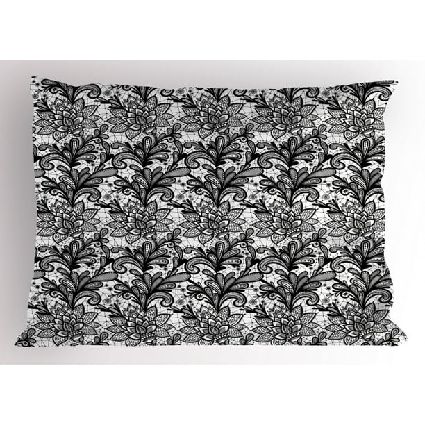 Leaf Pillow Sham Lace Style Graphic Ornament In Black And White