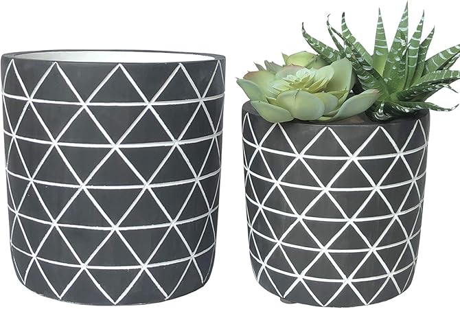 Amazon Com Cement Plant Pots Set Of 2 Black And White Planter