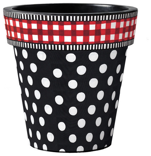 Black With White Dots 18 Art Pot Planter Contemporary Outdoor