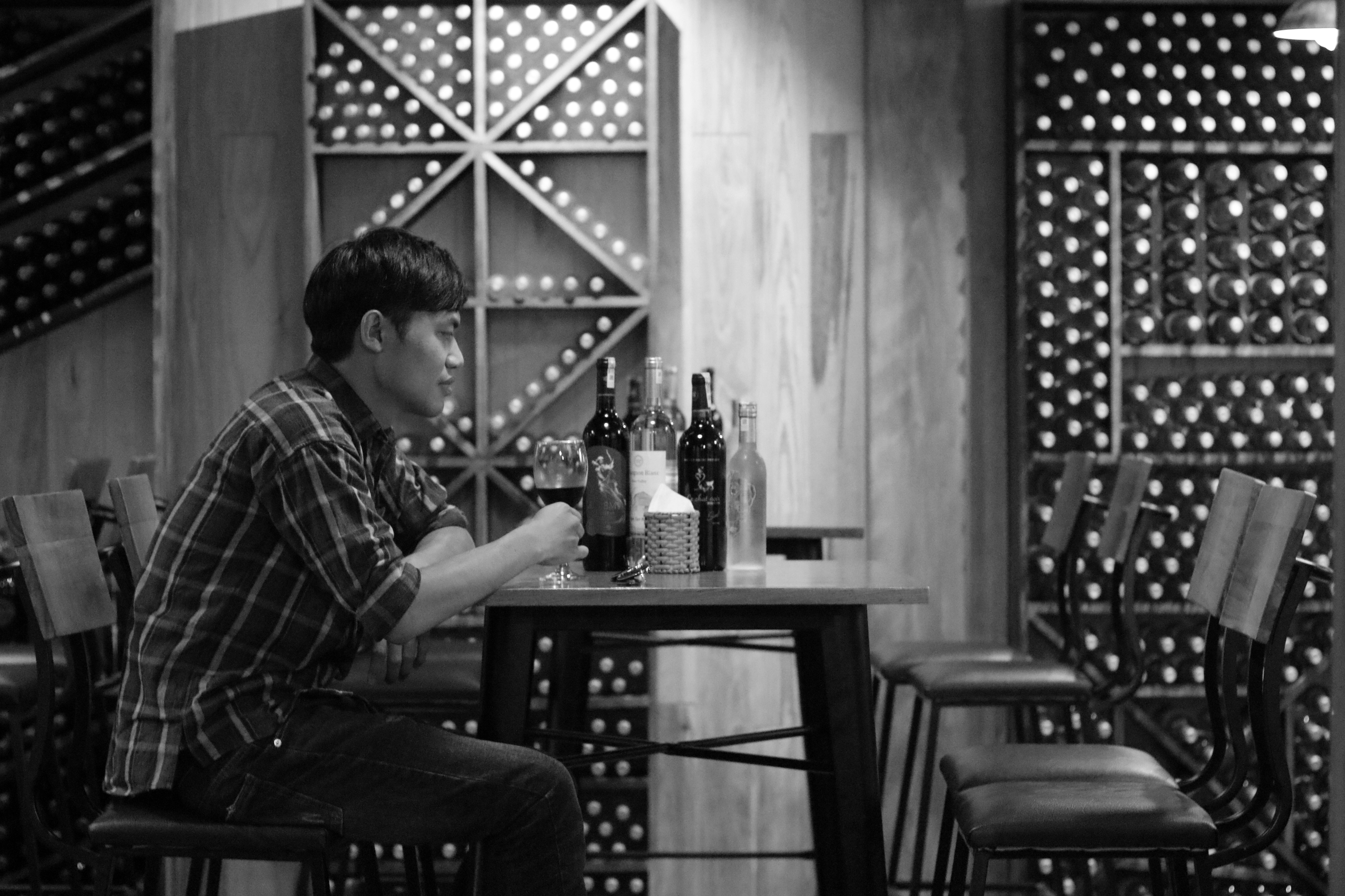 Man In Plaid Shirt Sitting On Chair Photo Free Black And White