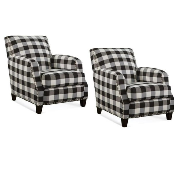 Set Of 2 Transitional Plaid Chair In Black And White Walmart