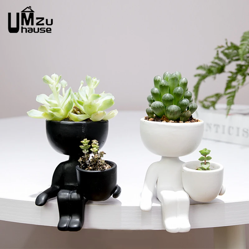 Unique Black White Man Flowers Pots Plant Planters Home Garden