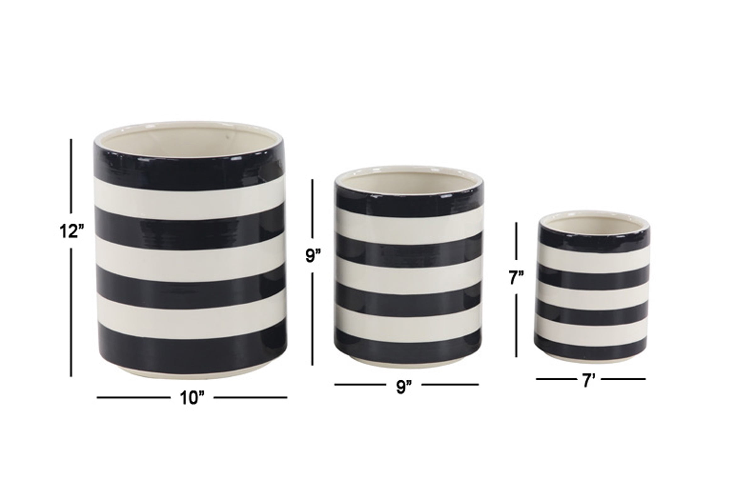 Decmode White And Black Striped Planters Set Of 3 Walmart Com