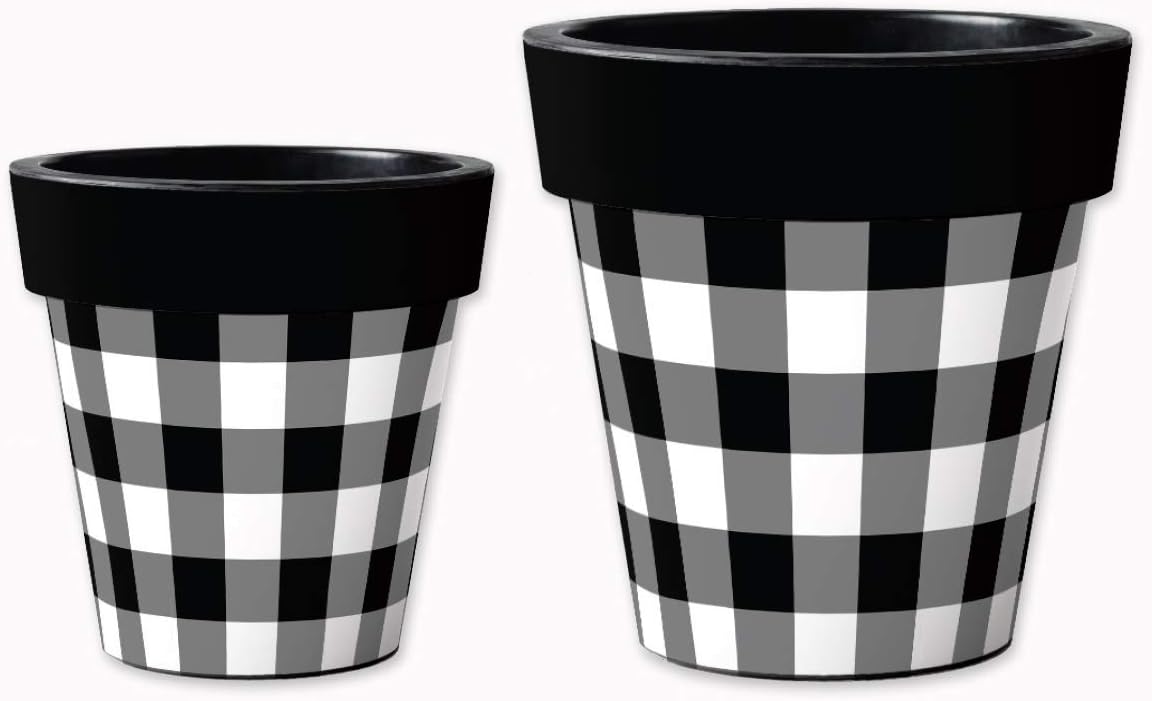 2 X Large Black White Plant Pots Indoor Garden House Plastic