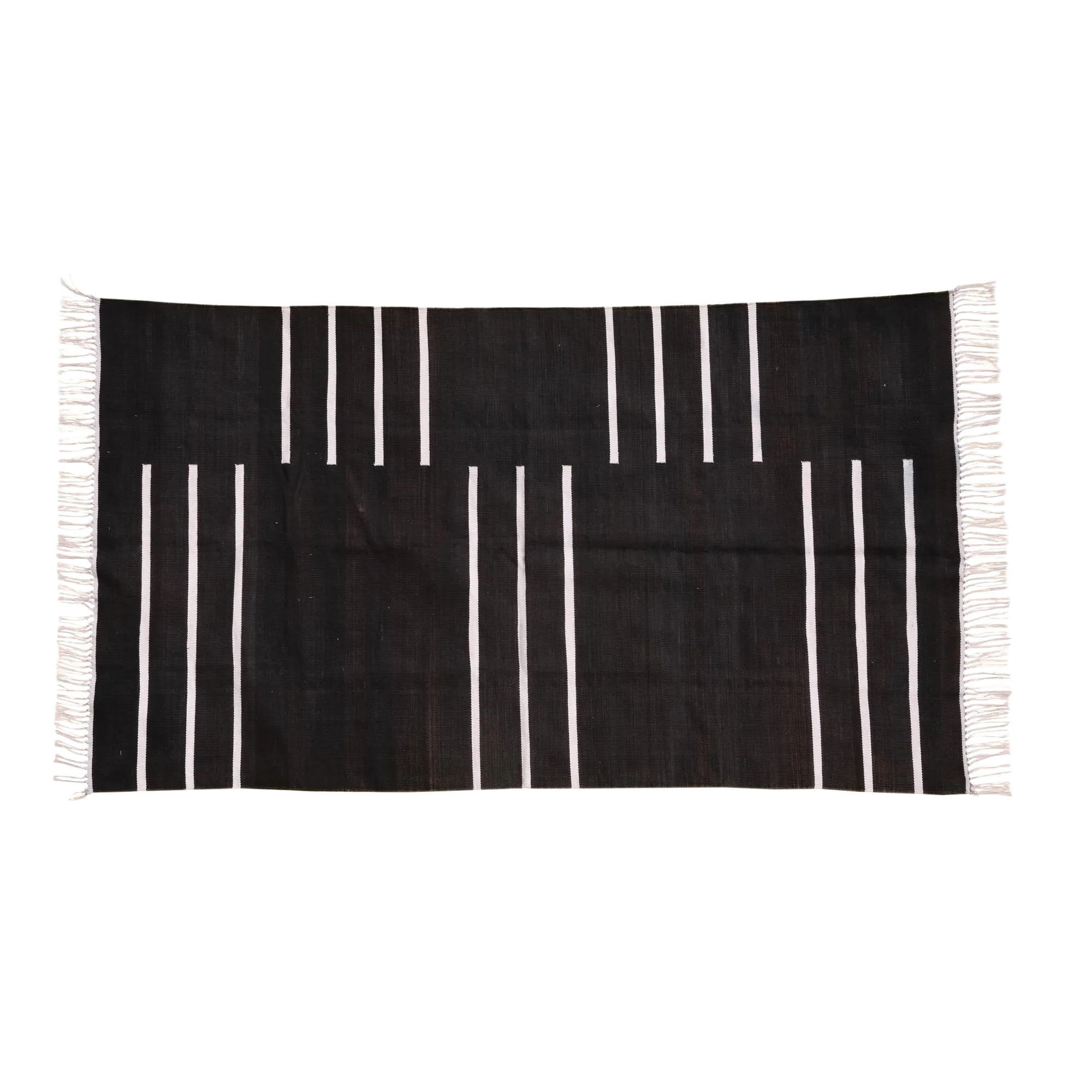 Offset Black Stripe Cotton Rug 5x8