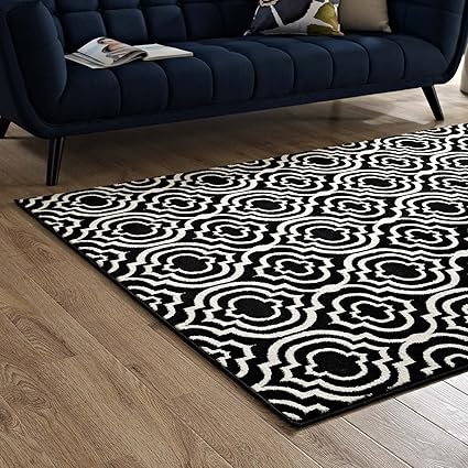 8 X 10 Indoor Black White Area Rug Mat Carpet Living Room