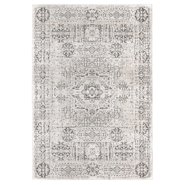 Lilja Distressed Vintage Persian Medallion 8x10 Area Rug Ivory