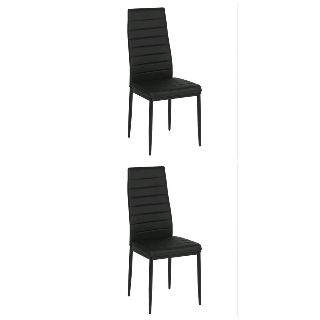 Set Of 2 Solid Back Matty Black White Striped Accent Dining Chairs