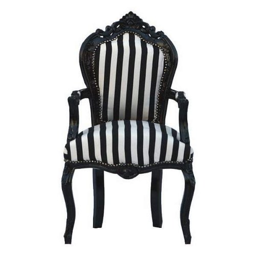 Louis Dining Arm Chair In Black White Stripe Fabric Products
