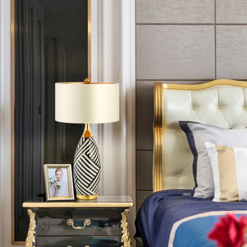Black And White Striped Ceramic Table Lamp Bedroom Bedside Lamp Designer Model Room Lighting Modern Hotel Room Lamp Lb022606 Led Table Lamps Aliexpress