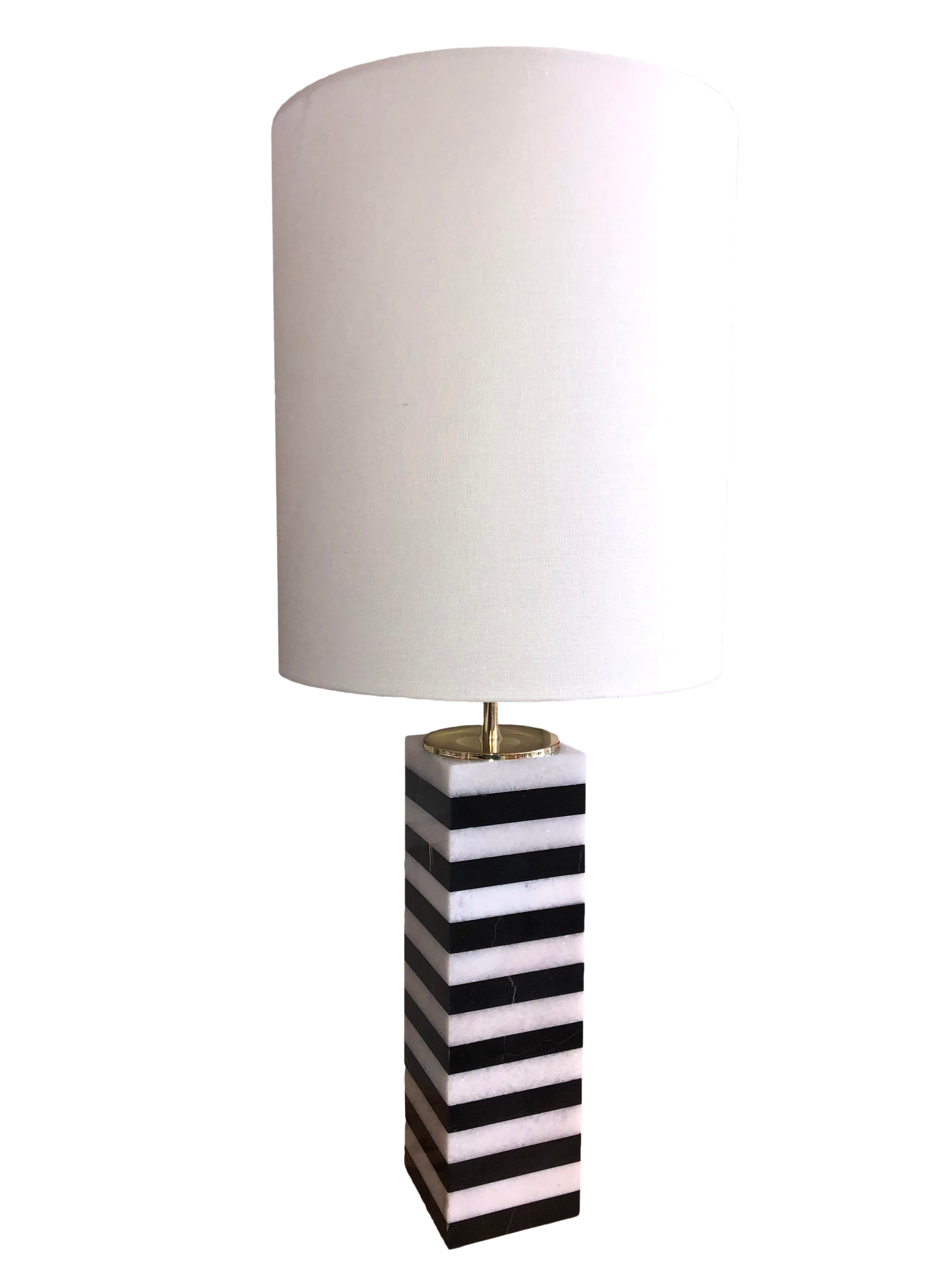 Square Black And White Striped Rectangular Marble Table Lamp With Shade Chairish