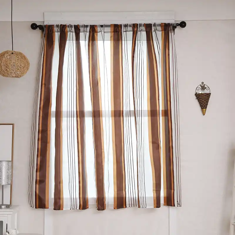 Hot Sale Curtains Delicate Smooth Striped Tulle Short For Bedroom
