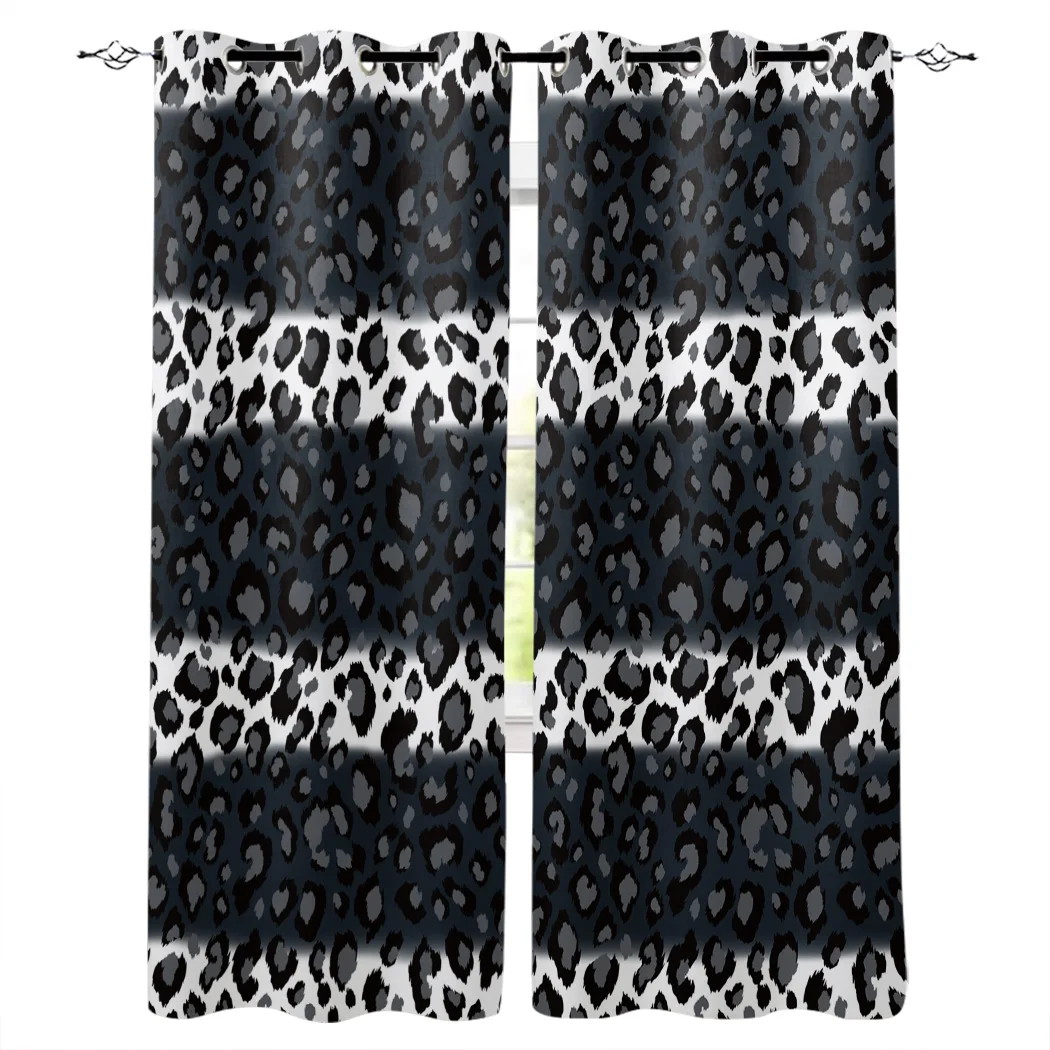 Leopard Print Black White Striped Print Window Treatments Curtains